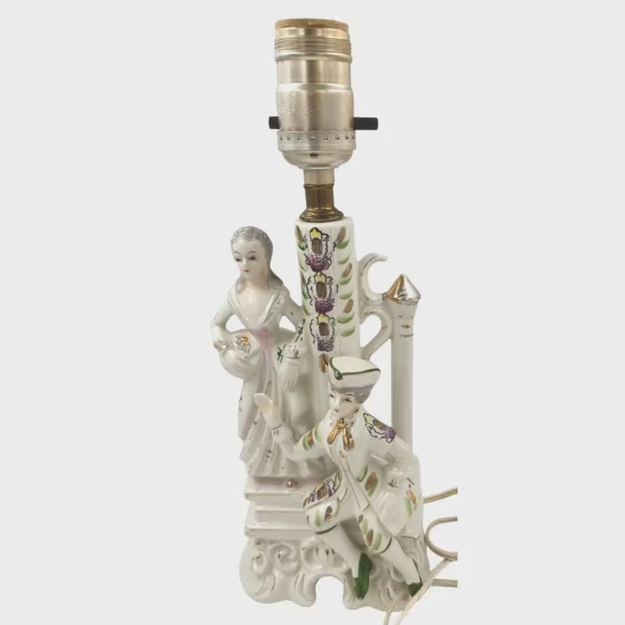 Wales Pottery Japan Figural Boudoir Lamp Victorian Style Lady Gentleman Porcelain 11.5 Inch